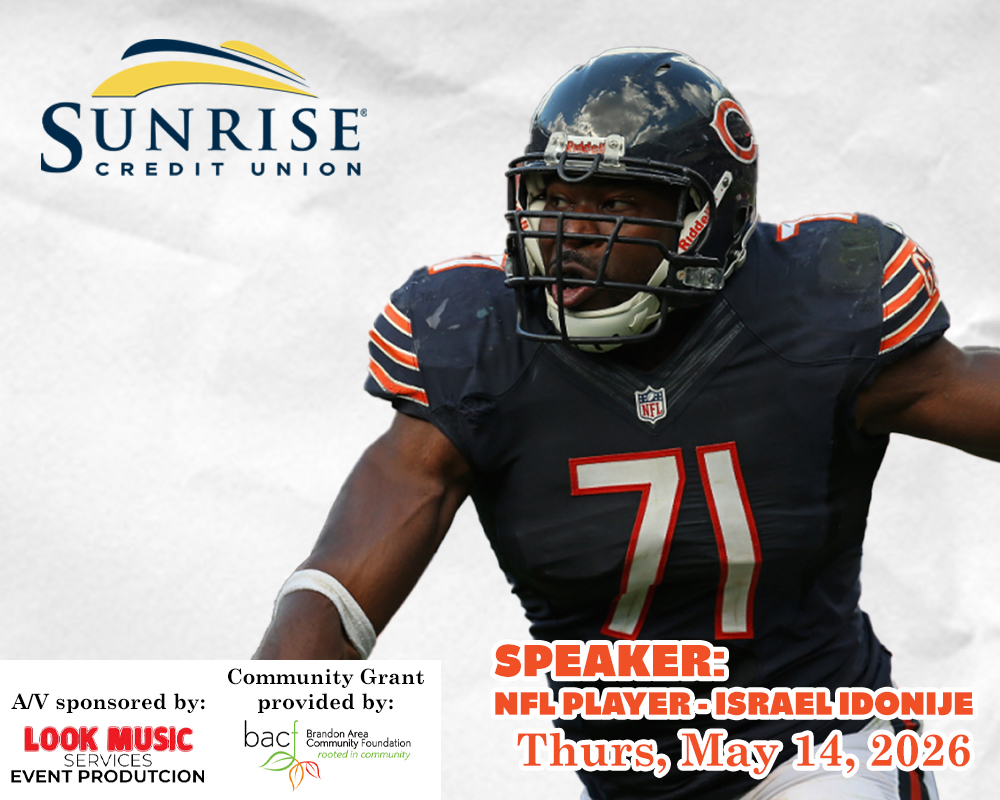 “Sunrise Credit Union is proud to help guide and support the development of future leaders by bringing them together to learn from someone who truly understands what it means to be community-minded, like Israel Idonije,” says Sunrise Credit Union President and CEO Tim Klassen. “The Sunrise Future Leaders Conference provides an excellent opportunity for youth across Western Manitoba to connect, become engaged, and develop valuable skills and knowledge that will empower them to make a positive impact in their communities.”